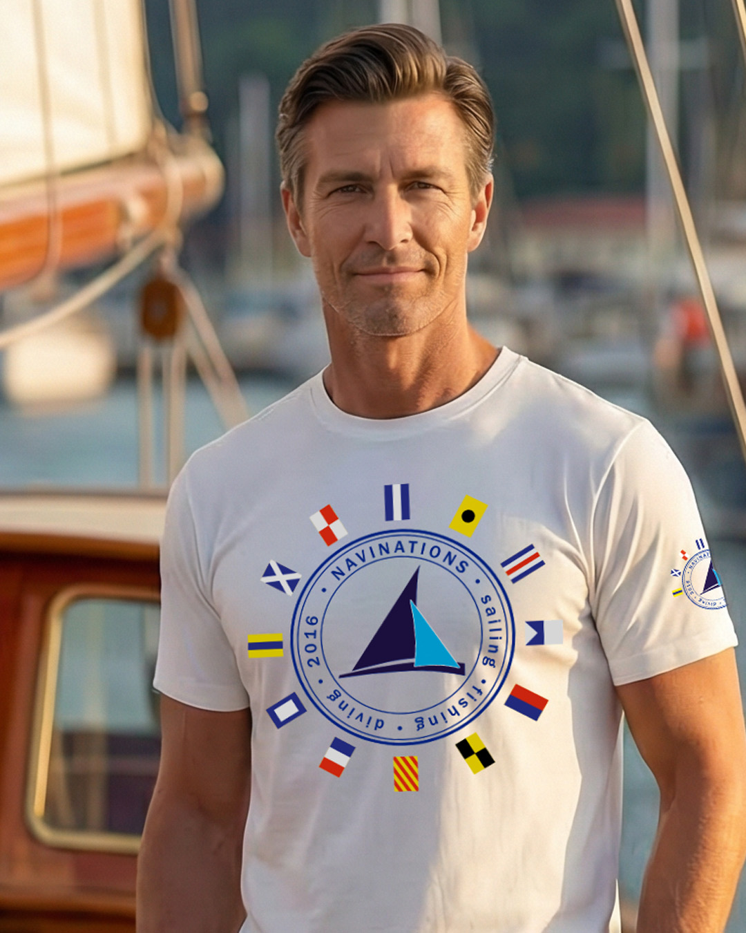 Koszulka żeglarska męska International Code of Signals ICS to model dla tych, którzy lubią żeglarstwo nie tylko za styl, ale też za jego prawdziwy język i tradycję. Projekt inspirowany Międzynarodowym Kodem Sygnałowym (MKS), znanym po angielsku jako International Code of Signals (ICS), łączy marynistyczny charakter z nowoczesną, dopracowaną grafiką. Biała baza, centralny motyw żagla i układ flag sygnałowych tworzą koszulkę, która od razu przyciąga uwagę, a jednocześnie zachowuje premium, żeglarski charakter.