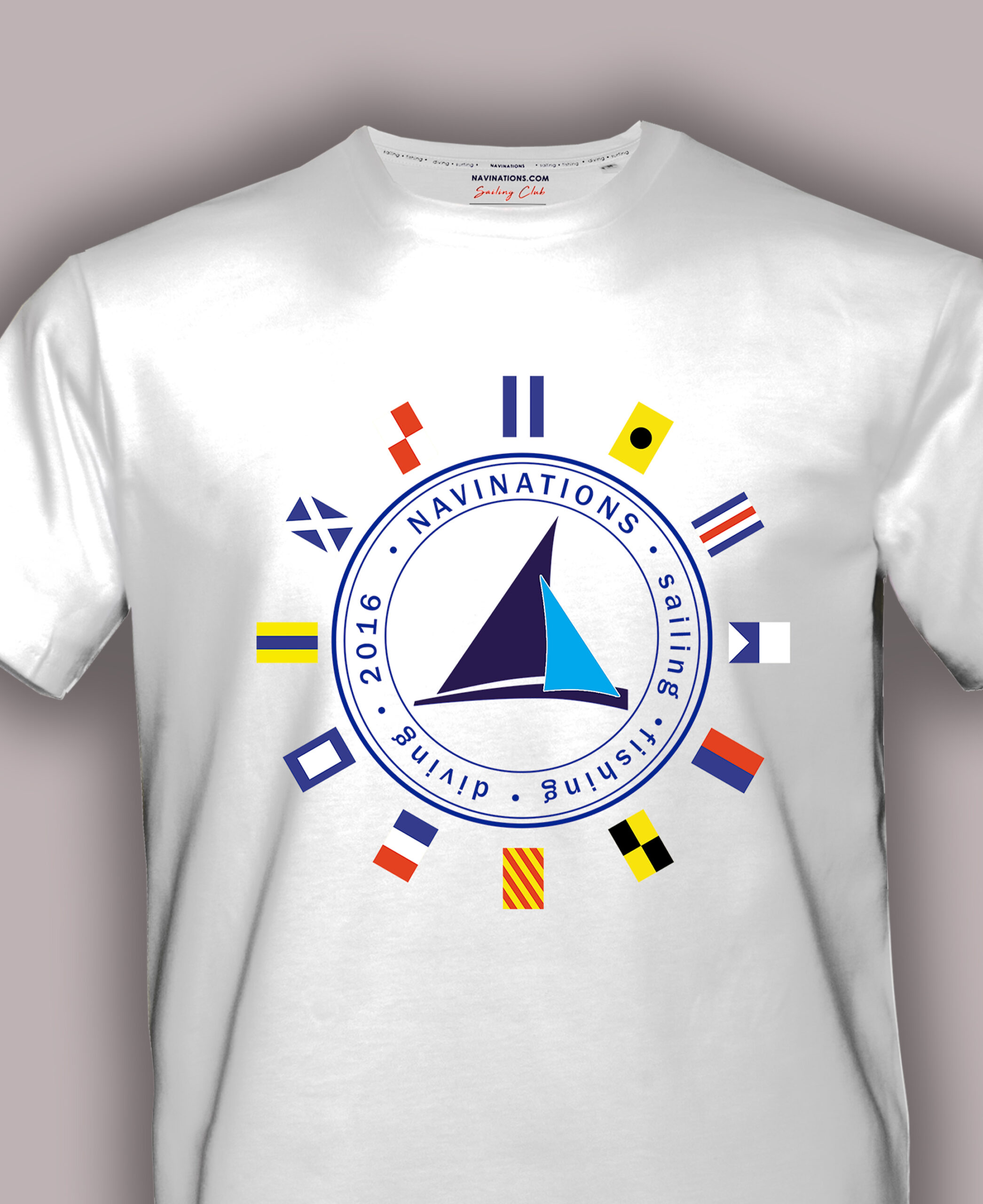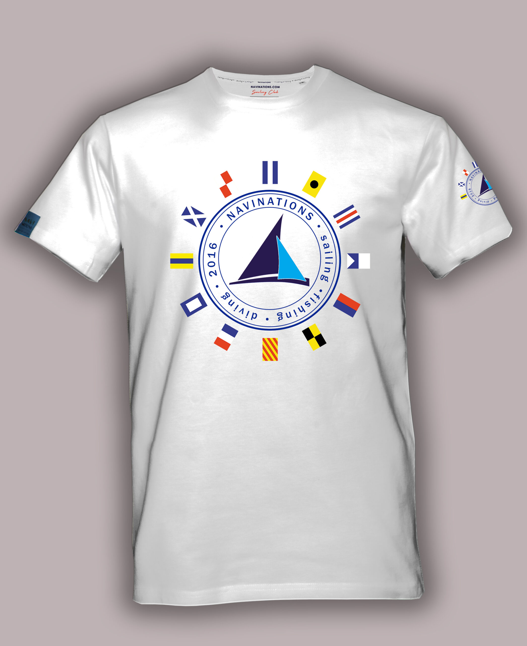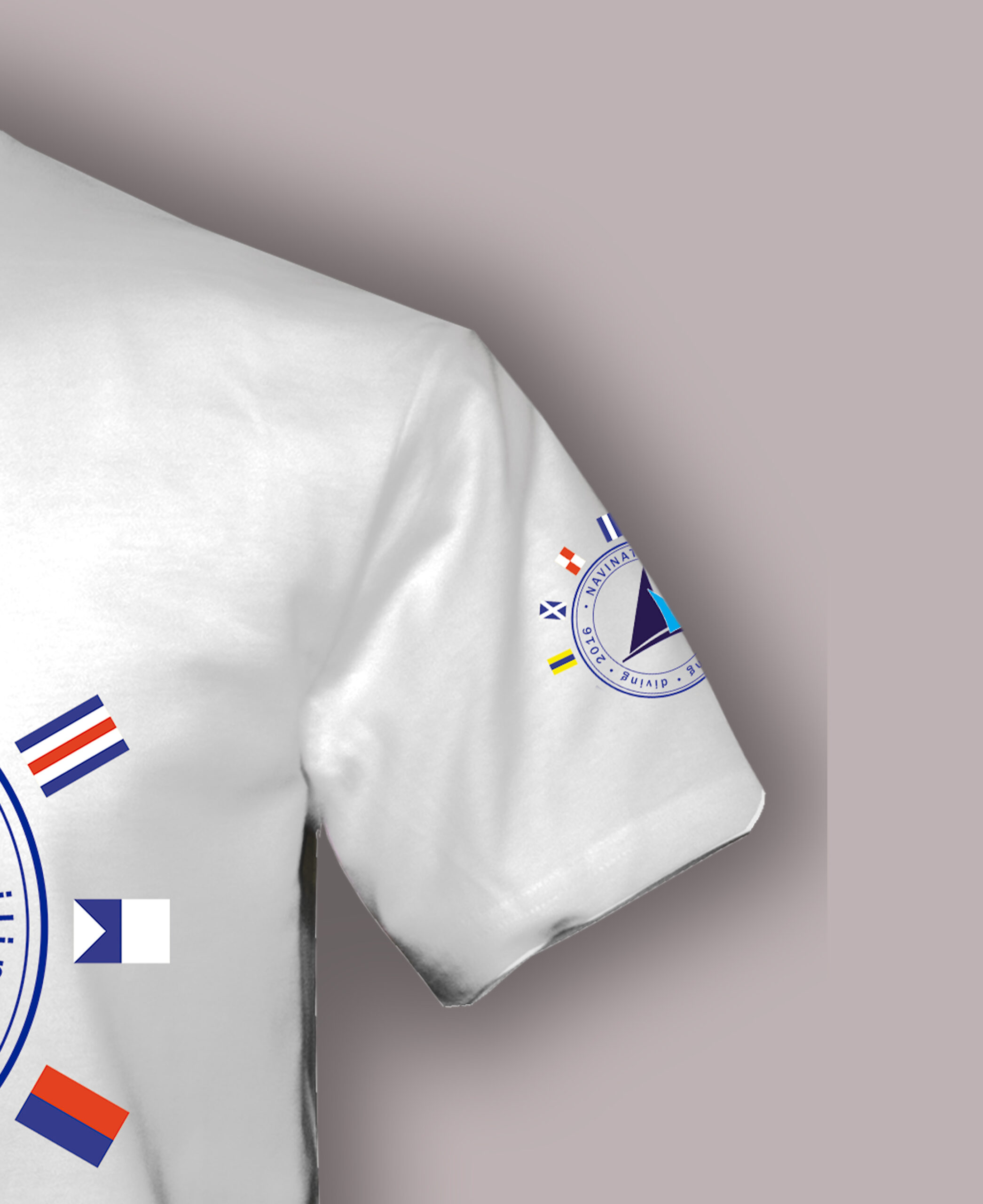 - Motyw Międzynarodowego Kodu Sygnałowego wyróżnia koszulkę na tle typowych nadruków marynistycznych.
