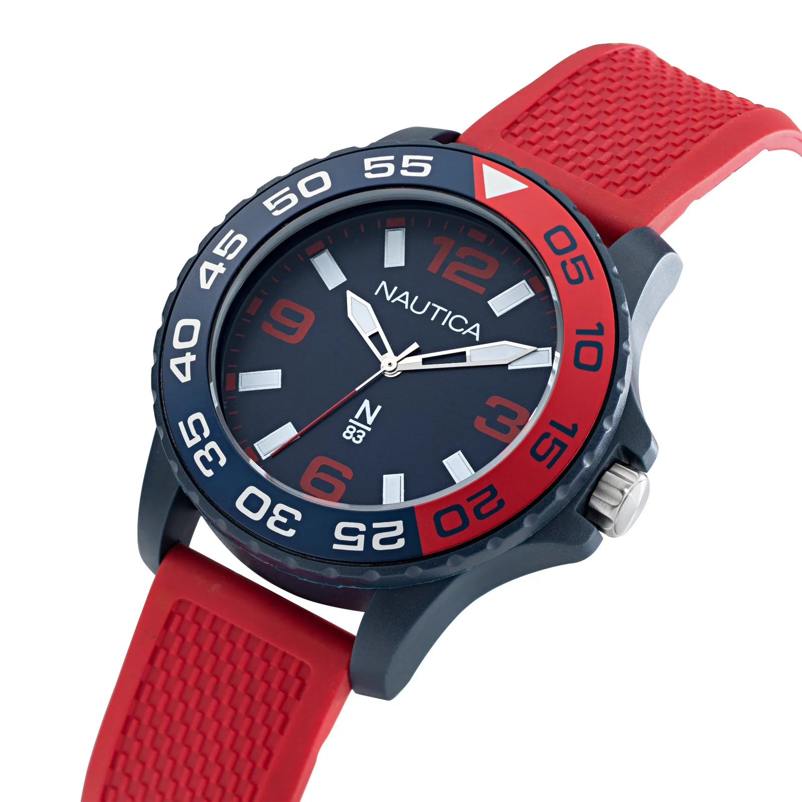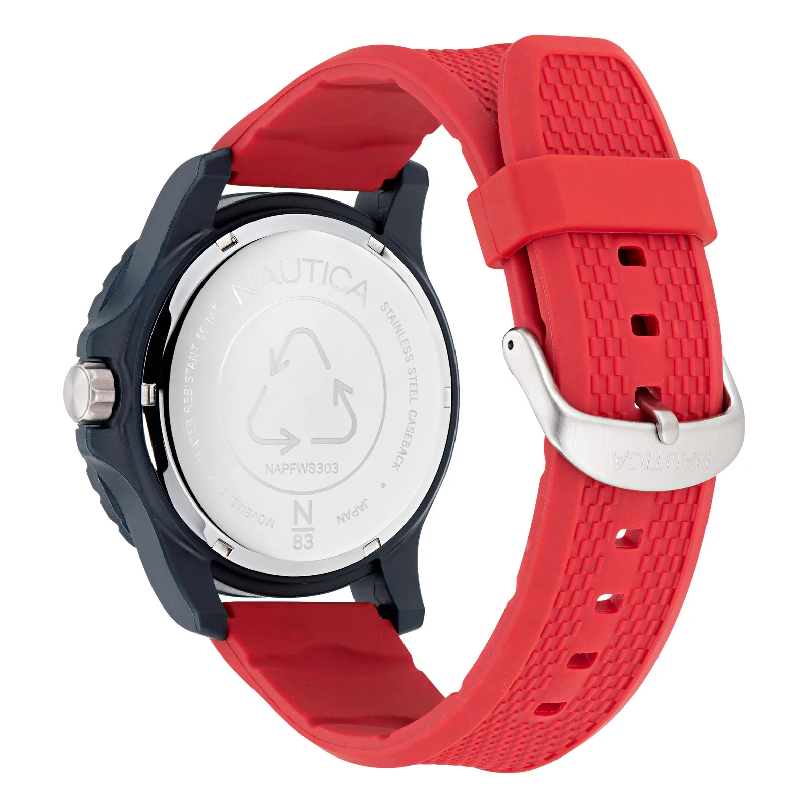 Nautica N83 Finn World NAPFWS303 to zegarek w sportowo-żeglarskim stylu, zbudowany z myślą o codziennym użytkowaniu „nad wodą”: czytelna tarcza, wyrazisty bezel i lekka koperta z tworzywa w formacie 45 mm. To model, który dobrze wpisuje się w klimat mariny – od rejsu po spacer po nabrzeżu.