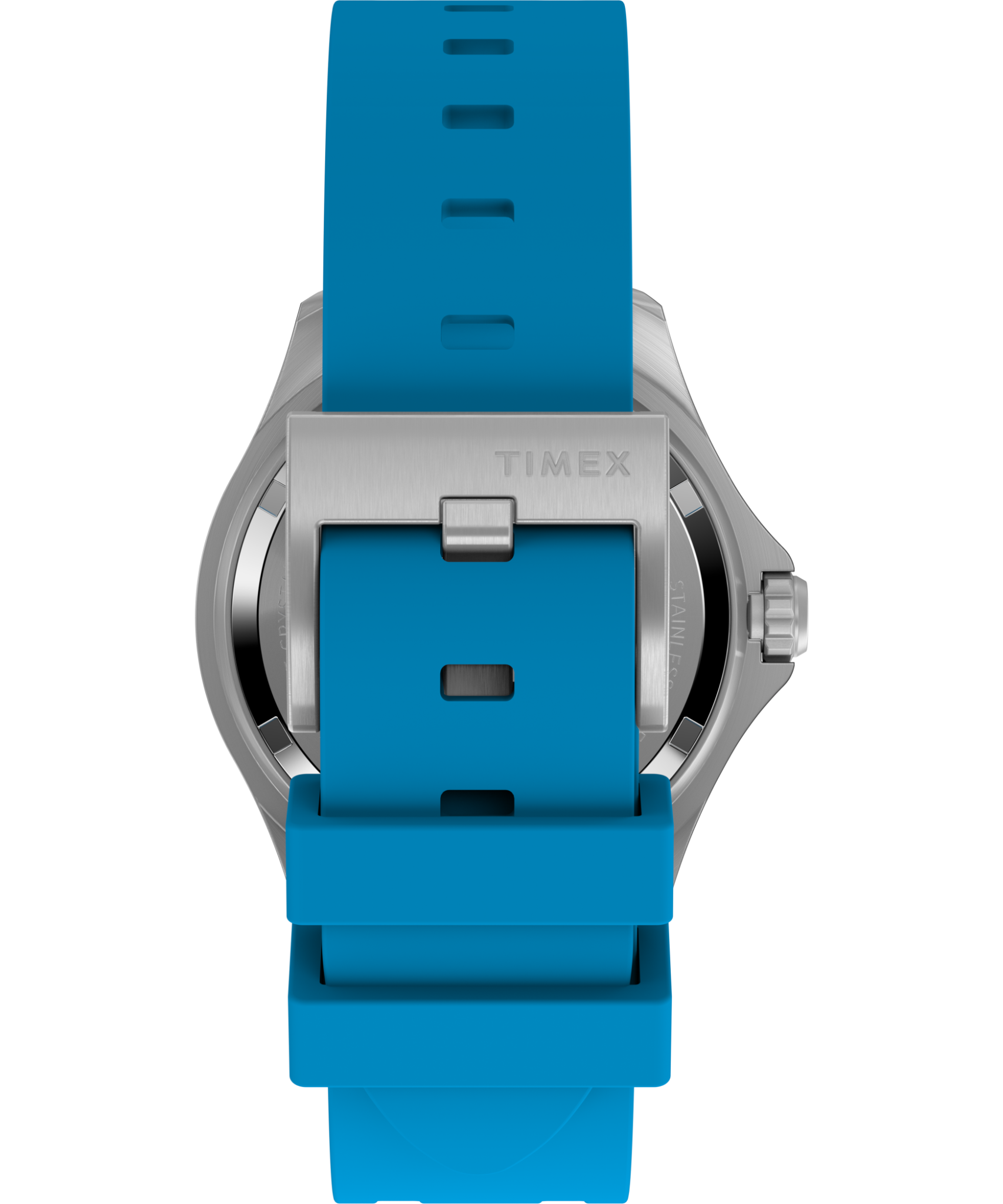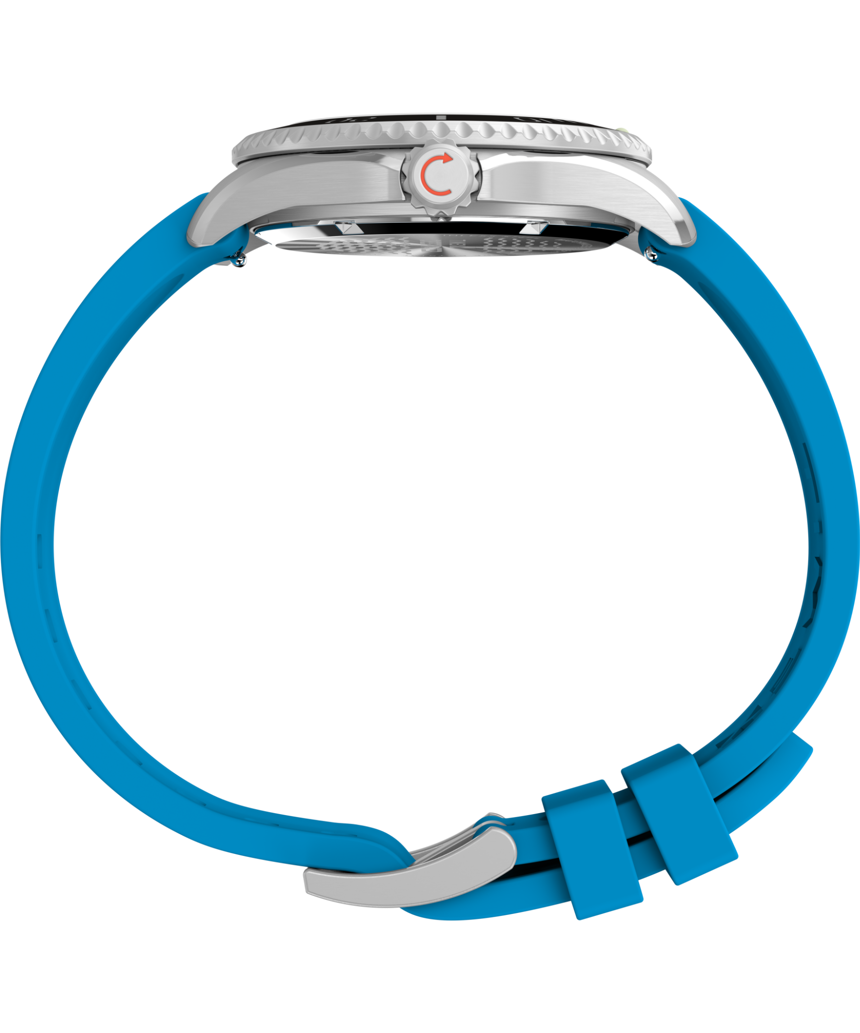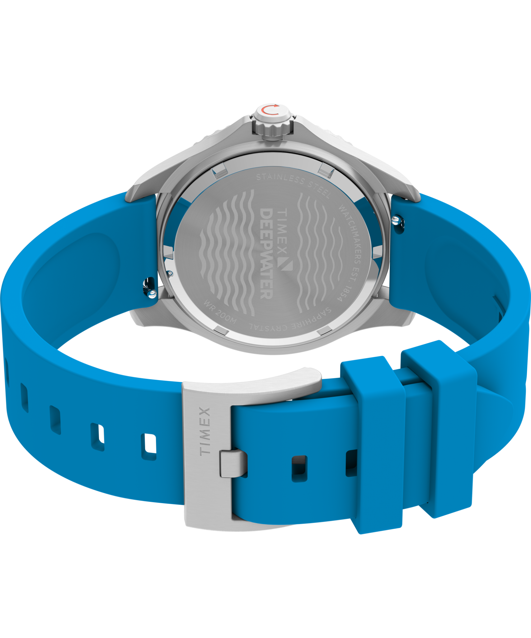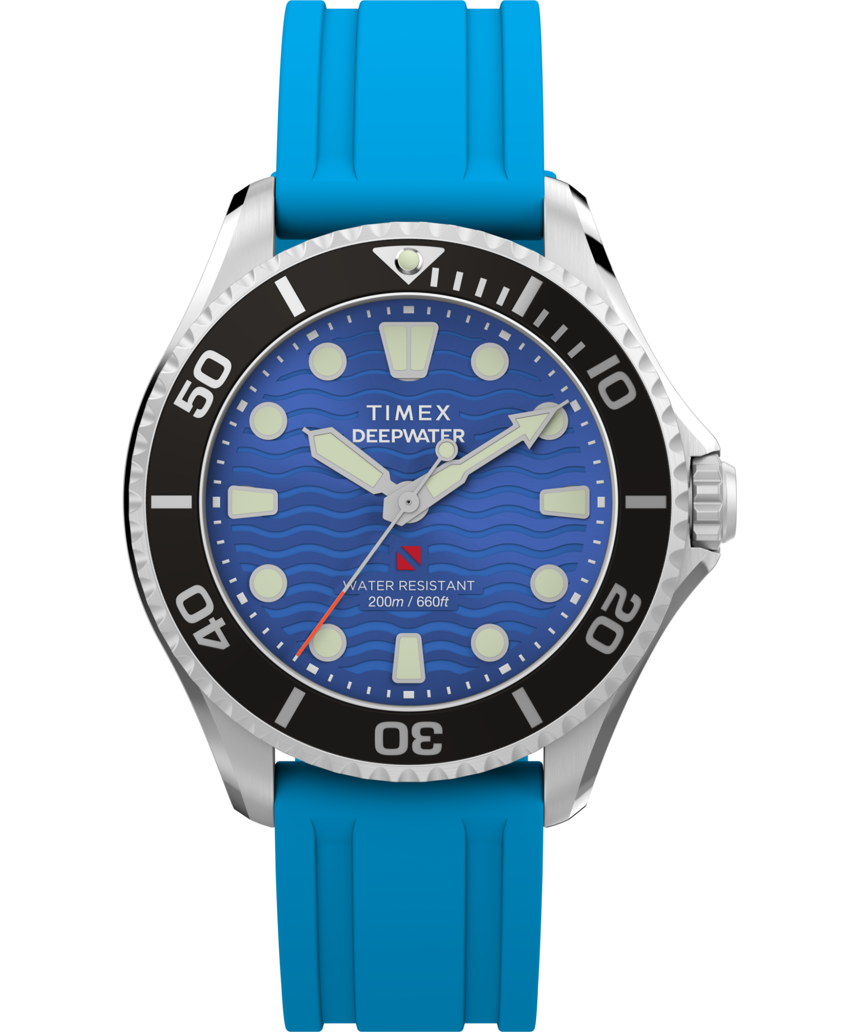 Timex Deepwater Meridian 200 TW2Y40400 to nurkowo-żeglarski diver w kompaktowym rozmiarze 38 mm — zaprojektowany tak, by liczyła się czytelność, pewny chwyt koronki i odporność w realnych warunkach: na pokładzie, w pianie fal i pod wodą. Stalowa koperta z mieszanym wykończeniem (szczotk/poler) i charakterystyczna, „falująca” tarcza budują styl, a techniczne elementy — zakręcana koronka, zakręcany dekiel, jednokierunkowy bezel i szafirowe szkło — domykają całość w duchu Deepwater.