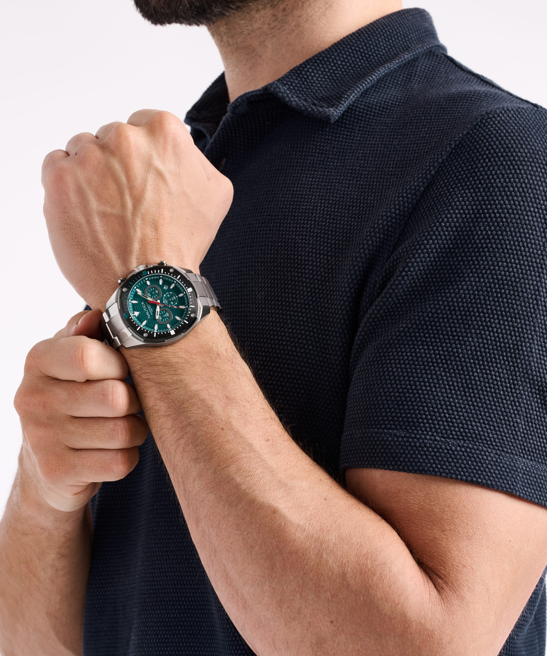 Nautica NAPBSF504 to elegancki, codzienny zegarek żeglarski w stalowym wydaniu. Bransoleta dodaje klasy, a zielona tarcza przyciąga wzrok i nadaje całości świeży, marynistyczny charakter. To model, który bez trudu przechodzi z biura na keję: czytelny, solidny i wygodny. Jeśli szukasz zegarka żeglarskiego na prezent, ten wariant „stal + zielony” robi świetne pierwsze wrażenie i zostaje na lata.